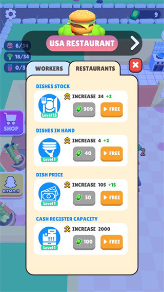1、享受烹饪各种美味食物的过程,逐步成长为顶级厨师,掌握制作快餐的高效技巧。