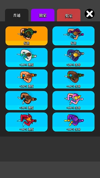 4、游戏内拥有多种不同的人物角色,他们各自拥有独特的属性。根据角色强度的不同,我们将其划分为普通、独家和奖室三大类别。想要解锁更强大的角色?那就努力满足特殊条件吧!