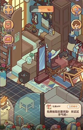 1、玩家可以自由选择多样的室内装修风格,包括北欧风、日式风和田园风,打造个性化温馨小屋。