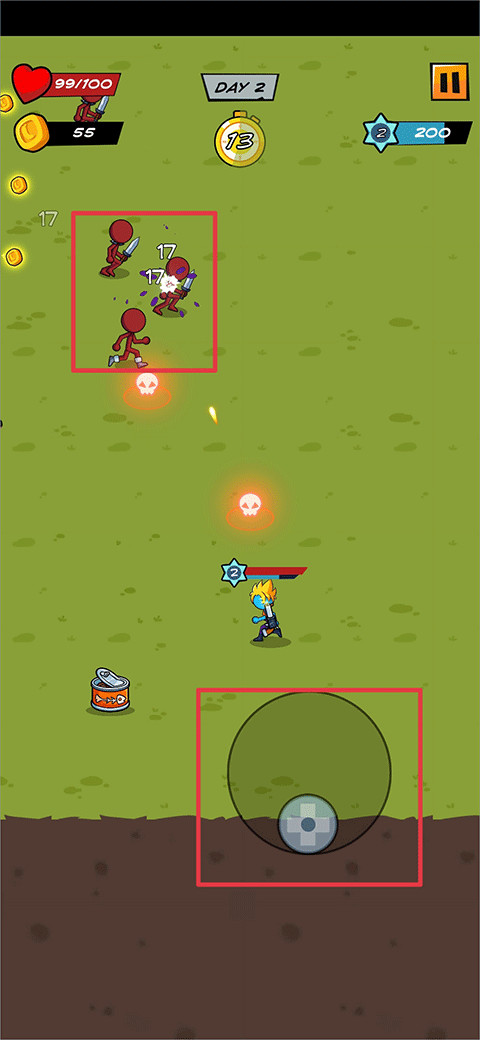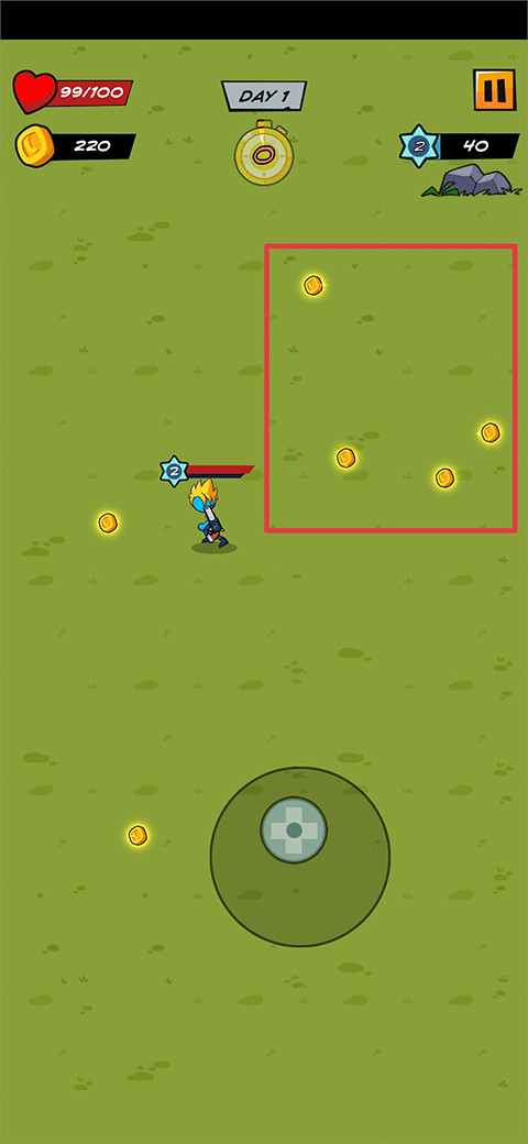 3、进入游戏后,通过下方轮盘操控角色的移动,并不断进行走位将地图中出现的敌人击杀