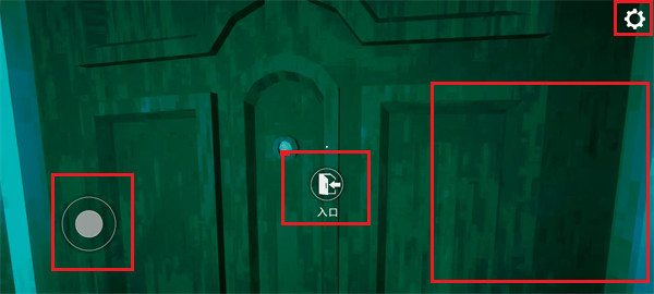 1、开局,左边是移动摇杆,右边滑动屏幕转动视角,右上角是设置按钮,随后点击中间“入口”,打开大门。