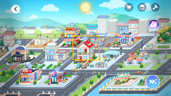 6、丰富场景玩法,每个地图场景如理发屋、美容院等均有多个子场景,玩家可滑动切换探索更多互动内容和趣味功能。