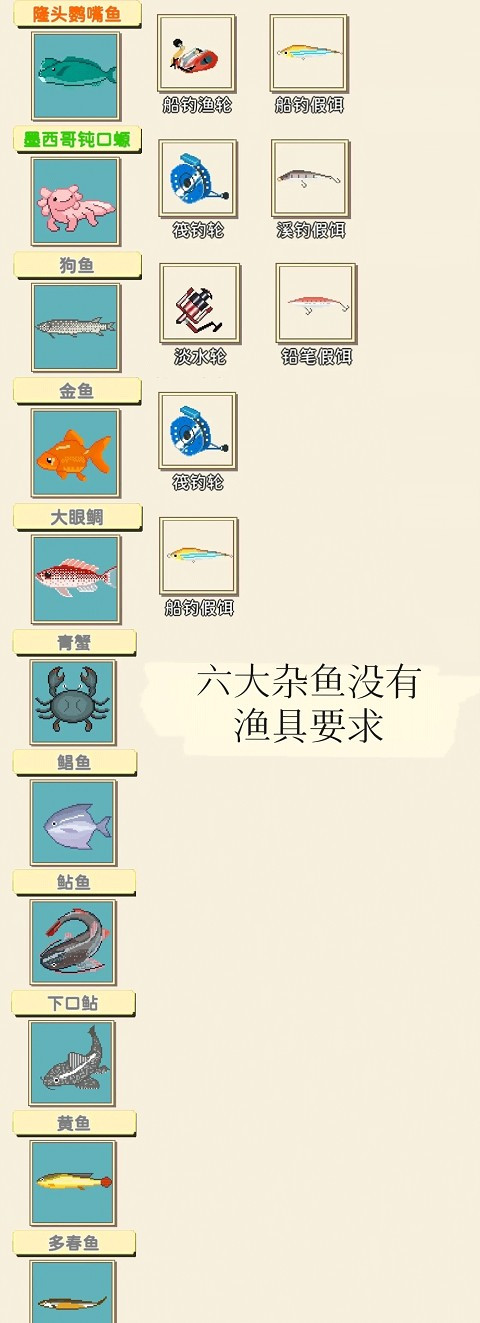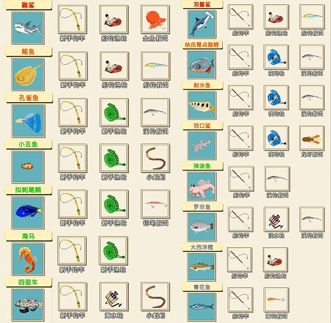 小丑鱼:新手钓竿、新手渔轮、小蚯蚓