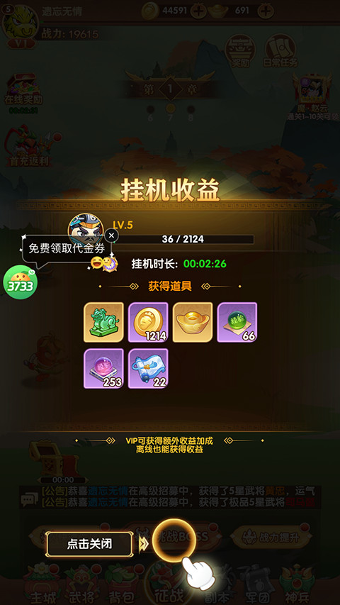 5、最后游戏内置挂机系统,离线也可以领取海量收益。