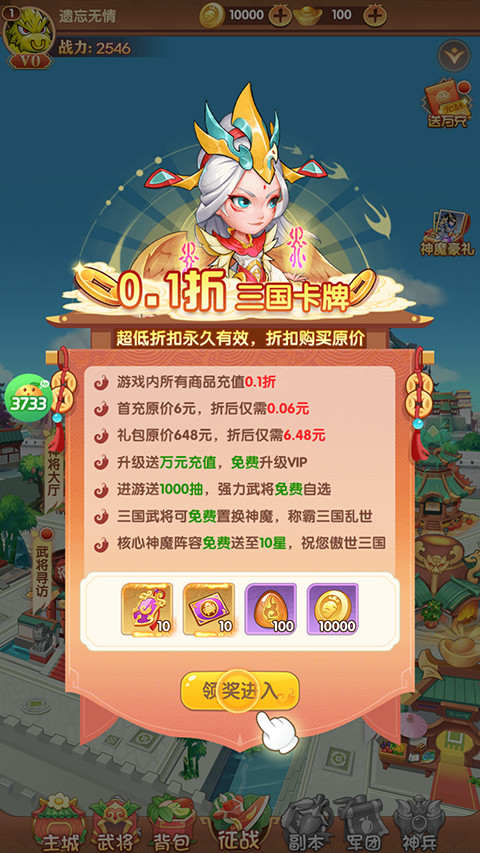 2、升级送万元充值卡 vip免费升级、送2倍速、送跳关特权,周卡、至尊卡免费激活!