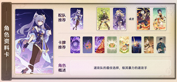 (2)队伍中一般放两个核心,注意不是输出,而是核心(也就是队内地位),以两个角色为核心构筑卡组目的就是防止卡牌太过杂乱,难以抽到核心角色所需的卡牌