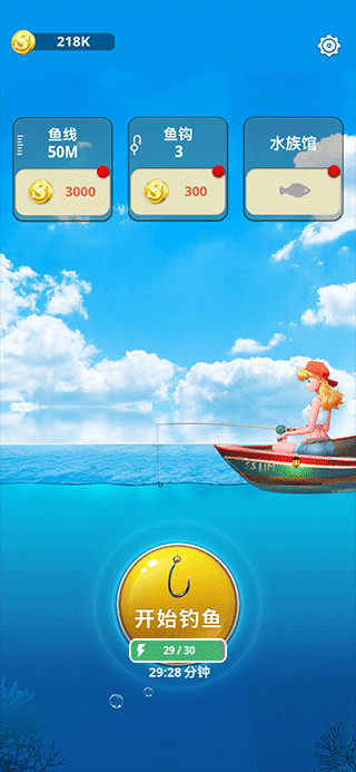 1、进入钓鱼假日手游游戏后,点击开始钓鱼。