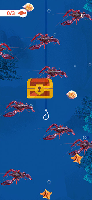 2、当鱼钩进入海里时,通过左右滑动可以收获更多的鱼类。