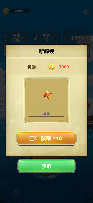3、当解锁新鱼后,还会有相应金币奖励,点击获取即可。