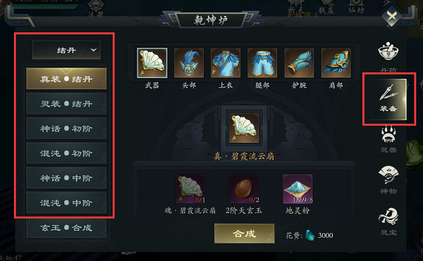 每一阶地图对应的怪物仙阶,爆出的装备及材料都是可以在当前仙阶使用的,对应境界的装备可以在主界面——乾坤炉中合成;