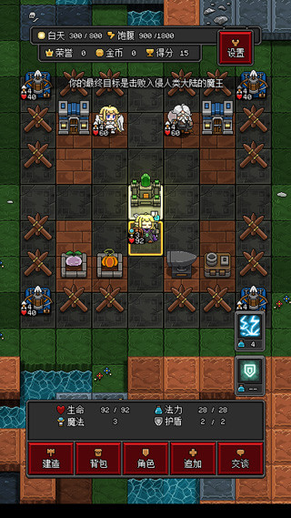 收集各种物资南瓜,萝卜等等都是恢复体力的必需品,前期别想着打BOSS,打起来虽然说简单,都是获得几个宝箱收益不高,挖矿什么的都可以挖,到后面解锁商人以后卖了买矿也是笔不小的收入,前面几天不要建家,基本守不住找来找去也麻烦,建家推荐在四个角的任意一角建家,这样的话找家方便,防怪范围也少了俩个面。