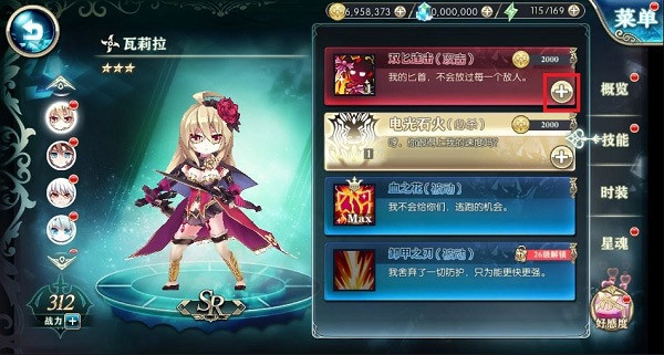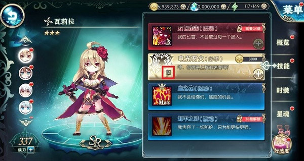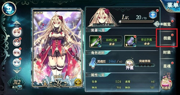 让我们点击画面右侧的技能页签。