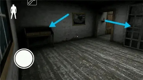 下楼梯后左边的地板上有一根黑线,从上面走过铃铛会响,需要注意。楼梯旁的柜子里可以躲,柜子对面有一个门,里面可能刷东西。柜子旁边有一个门通向地下室(由于画面较暗,所以不大容易发现),同时奶奶的出生地就是地下室,所以萌新不要一开始就往地下室跑哦。最后说明一下,以后就不提示了。墙上的画,照片,小物件等都是可以被碰掉的,所以走路时尽量不要贴墙。