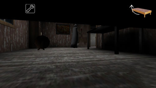 游戏刚开始玩家是在房子的第二层房子里面睡觉,然后醒来以后会发现房门紧闭。玩家自己是不能打开房门的,因此就需要老奶奶的帮助。游戏中起床以后会看到一个桌子,只要将桌子上的花瓶拿起来念动咒语,让后踢到桌子老奶奶就会迅速赶来,在此之前我们要躲在床底下或者柜子里面,以免被恐怖奶奶发现。