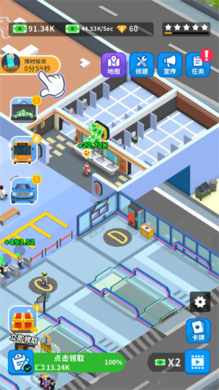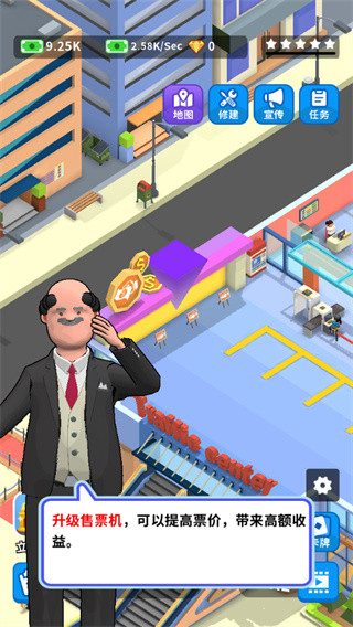 2、再升级售票机,售票机可以提高票价,为玩家获得高额的收益;