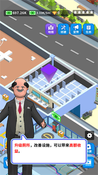 3、玩家还需要升级厕所来改善设施,帮助玩家获得高额收益;