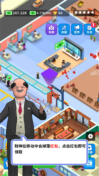 6、财神会在移动中掉落红包,玩家需要点击才能获得金钱;