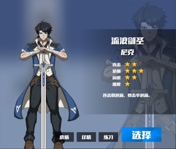 3、T2流浪剑客(优点同镰刀,但是不用连招不能连)(轻轻重可以超远距离先手,可以利用重击超强双侧判定预判对手闪现到身旁)