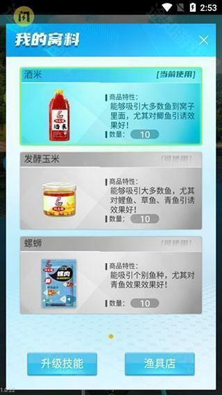 4、通过打窝垂钓获得金币,不断升级装备和等级提升实力。