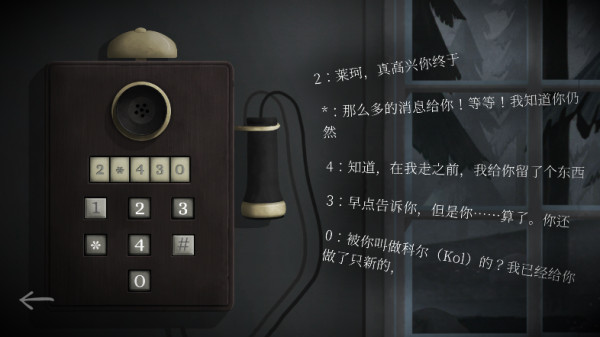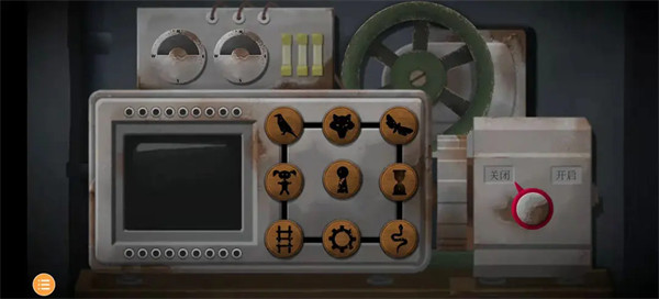22、第三章时间来到1937年,第一个场景变了,所以我们不需要去看时间,注意:不要随意点击灯泡!!!来到钟表店,虽然是关灯状态,但是我们在第二章有了钥匙,可以随意进出。这次玩家一和玩家二的场景一致,进入钟表店后向下滑动,看到一台发电机,左侧的显示屏旁边有九个按键,游戏将它们从1~9依次编号,无论如何变换位置,1~9的位置是不变的,所以当它每次转动后,每次的1都不是一个按键。右侧开始后,玩家一率先有提示,之后便是玩家二有提示,一共18次,每人9次。