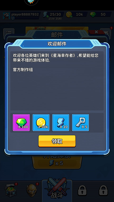 3、回到游戏的主界面,在邮件里有制作组为我们准备的礼包。
