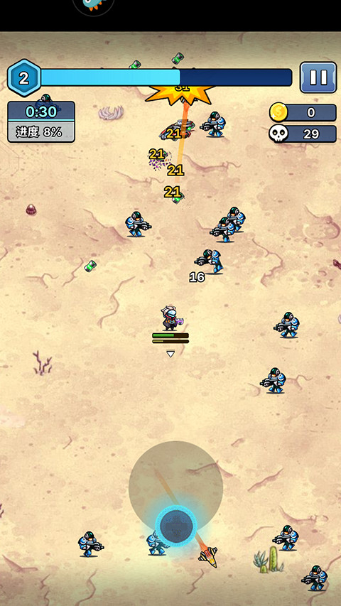 6分钟即可爽一局,单手就能操作,一个人消灭千军万马,超爽快解压。