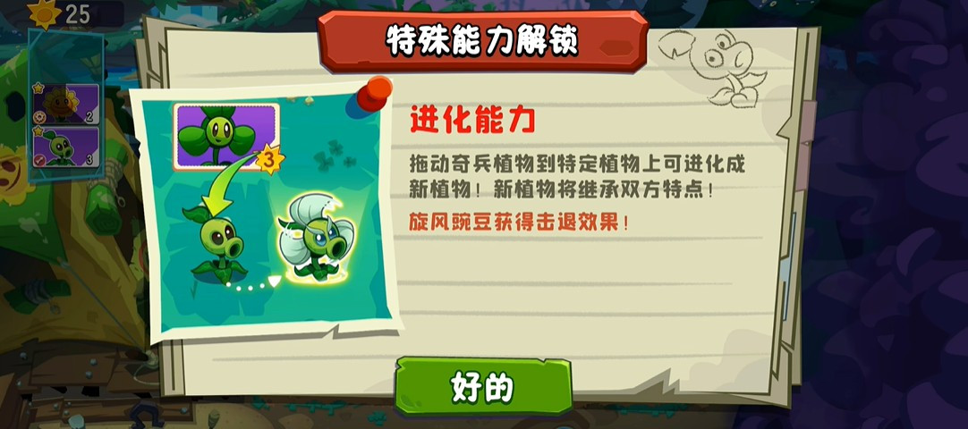 将游戏中的三叶草拖动到特定植物上就可以进行融合,只有特定植物之间才可以融合,豌豆射手与豌豆射手之间就无法融合