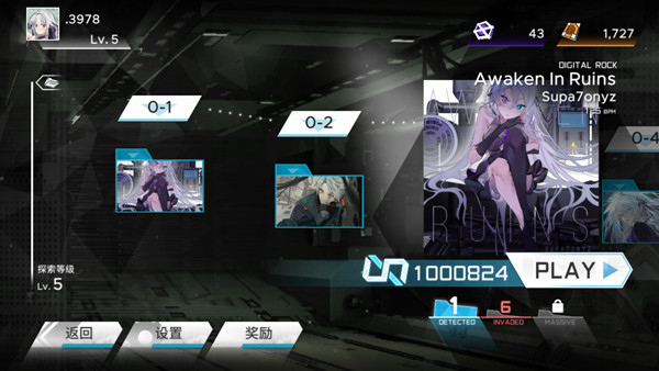 1、打开范式起源官方版,进入游戏如图,玩家可自由选择曲目,以及难度进行挑战;