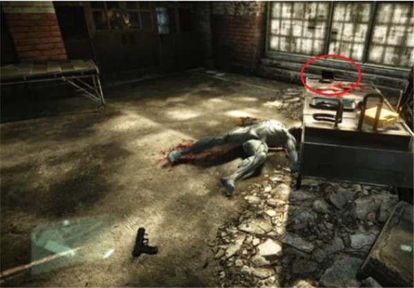 醒来后,强撑着身体捡起手枪,靠近尸体的时候可以观看此人留给我们的影像。