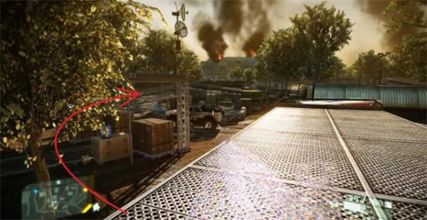 此处会解锁手雷,击败敌人后进入箭头指向的岔路。