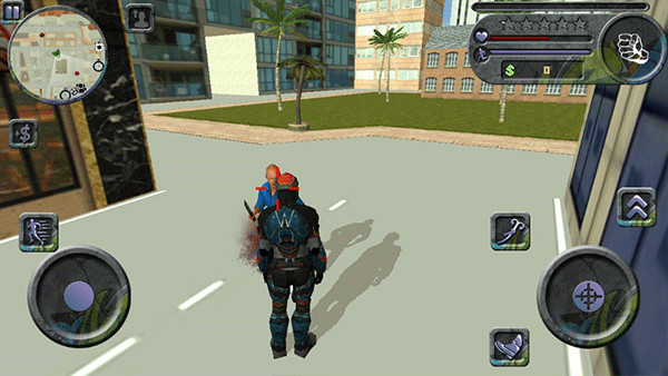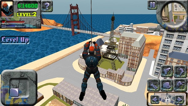 2、独特的游戏设置,非一般的跑酷游戏!和超级反派战斗,使用蛛丝飞荡、攀爬墙壁、完成高空跳跃。