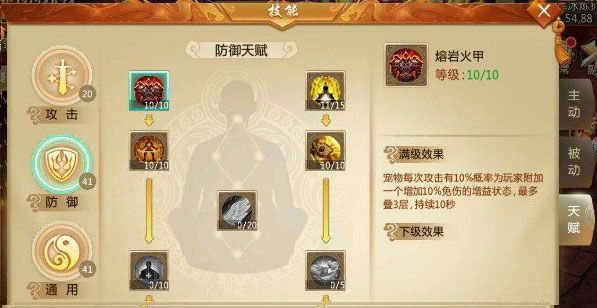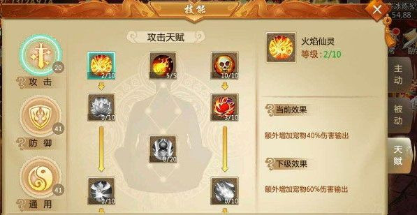 天赋分为三大类:攻击、防御、通用。