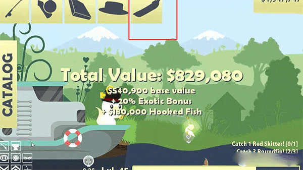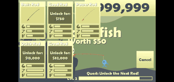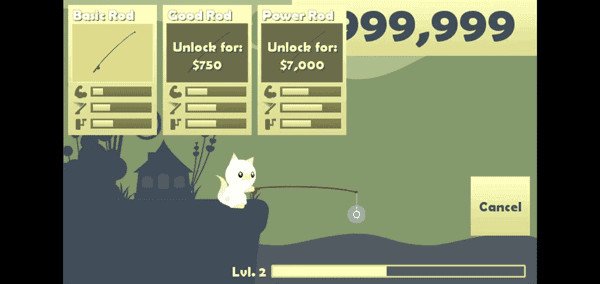 4、获得一定后,你可以在商店购买渔具,这样你的鱼钩能抛到更远的地方,钓到更多的鱼。