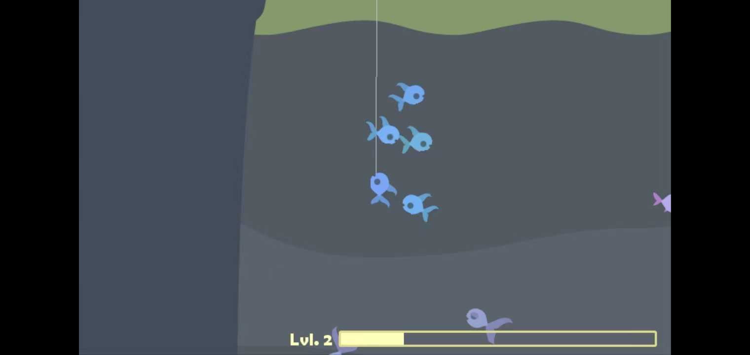 1、通过滑动手机屏幕,把鱼钩抛进水中钓鱼;