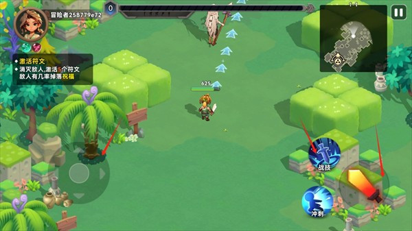 3、滑动左边的轮盘到敌人附近,点击右边的攻击和技能,干就完事了。游戏有着多样的技能可以使用