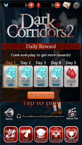 1、下载进入黑色走廊2游戏,游戏中拥有大量的每日奖励等你领取;