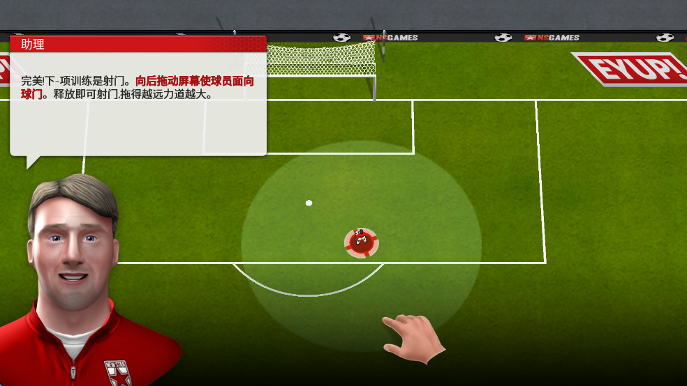 5、足球射出方向与拖动方向相反,手指离开屏幕后,球将被踢出。