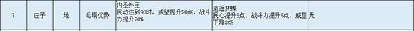 技能2(逍遥梦蝶):民心提升5点,战斗力提升5点,威望下降8点。