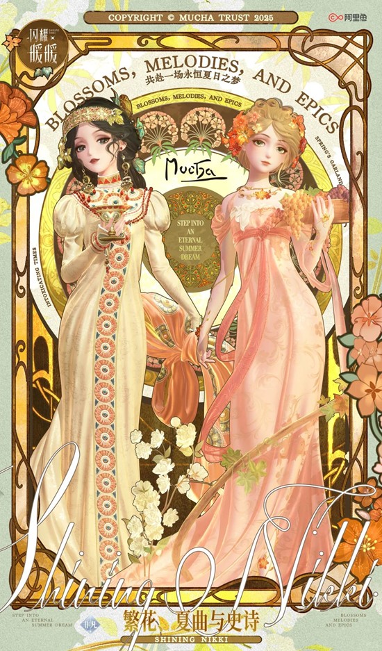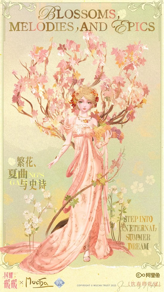10月24日起,参与闪耀暖暖×阿尔丰斯·慕夏联动活动【繁花、夏曲与史诗】,获取联动非凡服饰【酩醉的时光】&【饮春的花冠】!