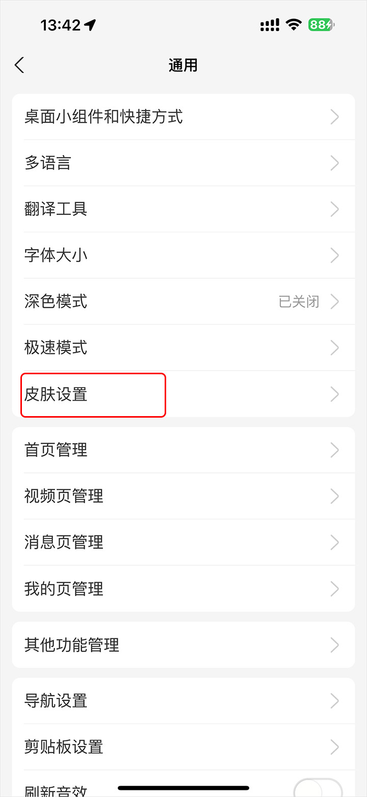 4、进入通用页面后,点击皮肤设置选项
