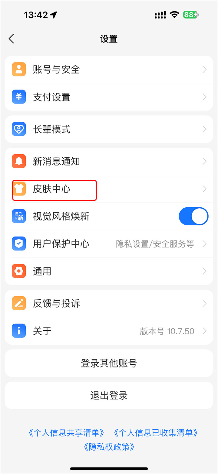 7、如果你没支付皮肤的话,可以在“设置”中进入“皮肤中心”领取
