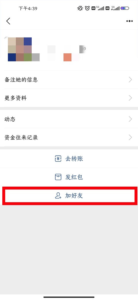 6、搜索完成后,就会进入好友详细页,点击添加即可
