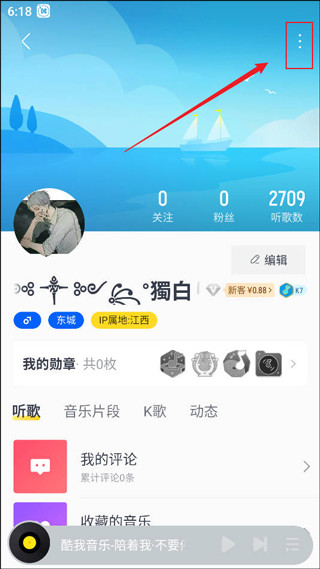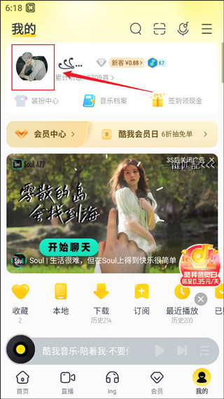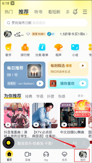 1、在酷我音乐首页点击右下角我的按钮进入个人主页