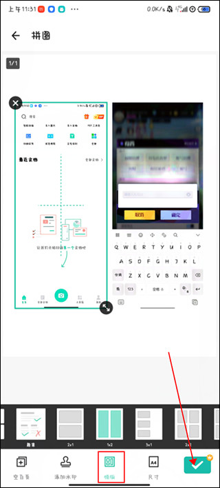 4、来到拼图页面,选择好合并图片模板之后点击右下角的“勾号”按钮即可。