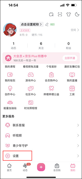 2、进入个人中心页面,往下滑动屏幕,找到并点击下方的“设置”选项;