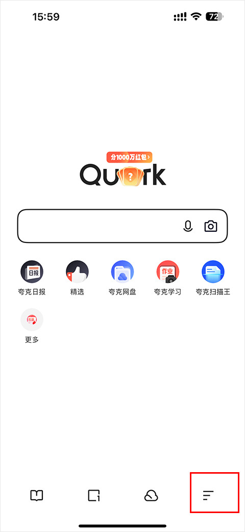 1、打开您的夸克浏览器应用,点击屏幕右下角的三横线菜单图标。