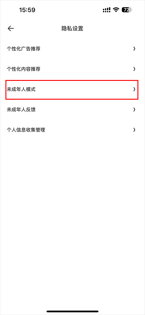 4、然后在最新的隐私设置的页面,点击【未成年人模式】