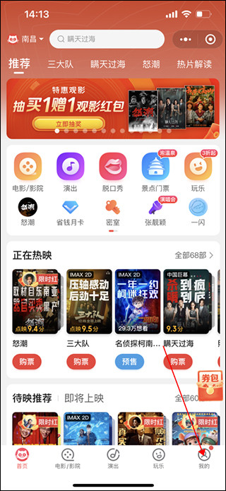 1、打开猫眼app,进入到用户界面,点击页面右下角的“我的”按钮;