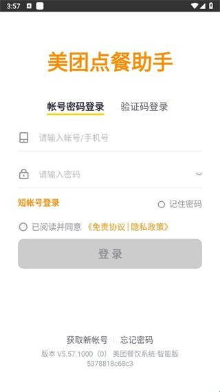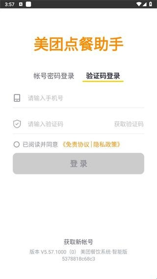 1、首先打开美团点餐助手,打开软件之后有账号密码登录、验证码登录两种方式,