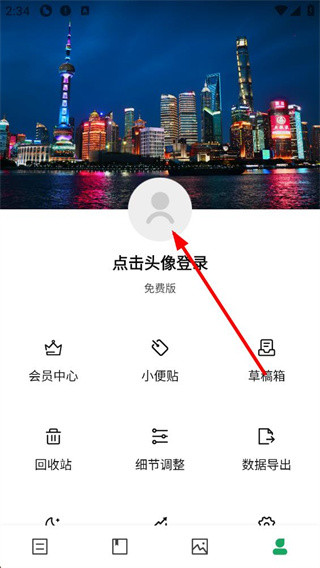 2、我的页面,可见会员中心、小便贴等功能入口,点击点击头像登录区域,进入账号登录界面。